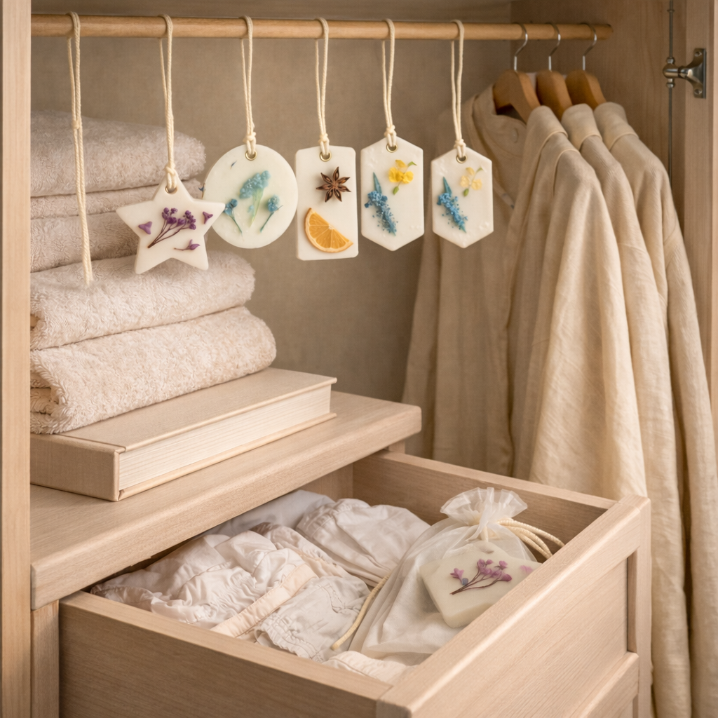 Yuliia TkachenkoAmbientadores artesanales de cera de soja para armarios, cajones y textiles. Una forma natural y delicada de perfumar la ropa y el hogar.