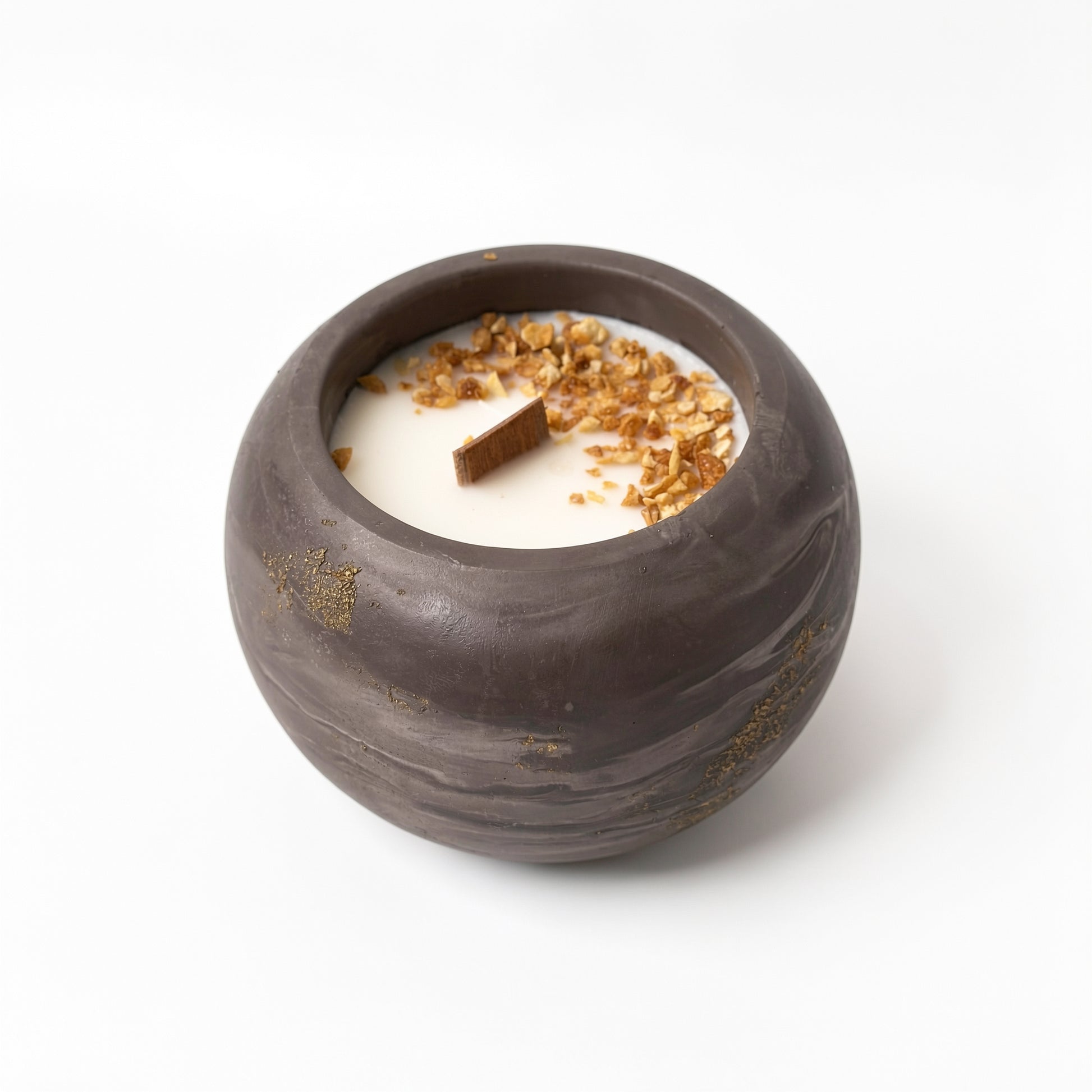 Una pieza artesanal creada para aportar luz cálida, aroma y un detalle decorativo elegante. Elaborado a mano en Jerez de los Caballeros, España con cera de soja 100% vegana, sin parafina. Portavelas/soporte artesanal de yeso hecho a mano (según diseño). Formato: 120 g. Medidas aproximadas: 10 × 10 × 7 cm. Color / acabado: Gris Chocolate & Oro.