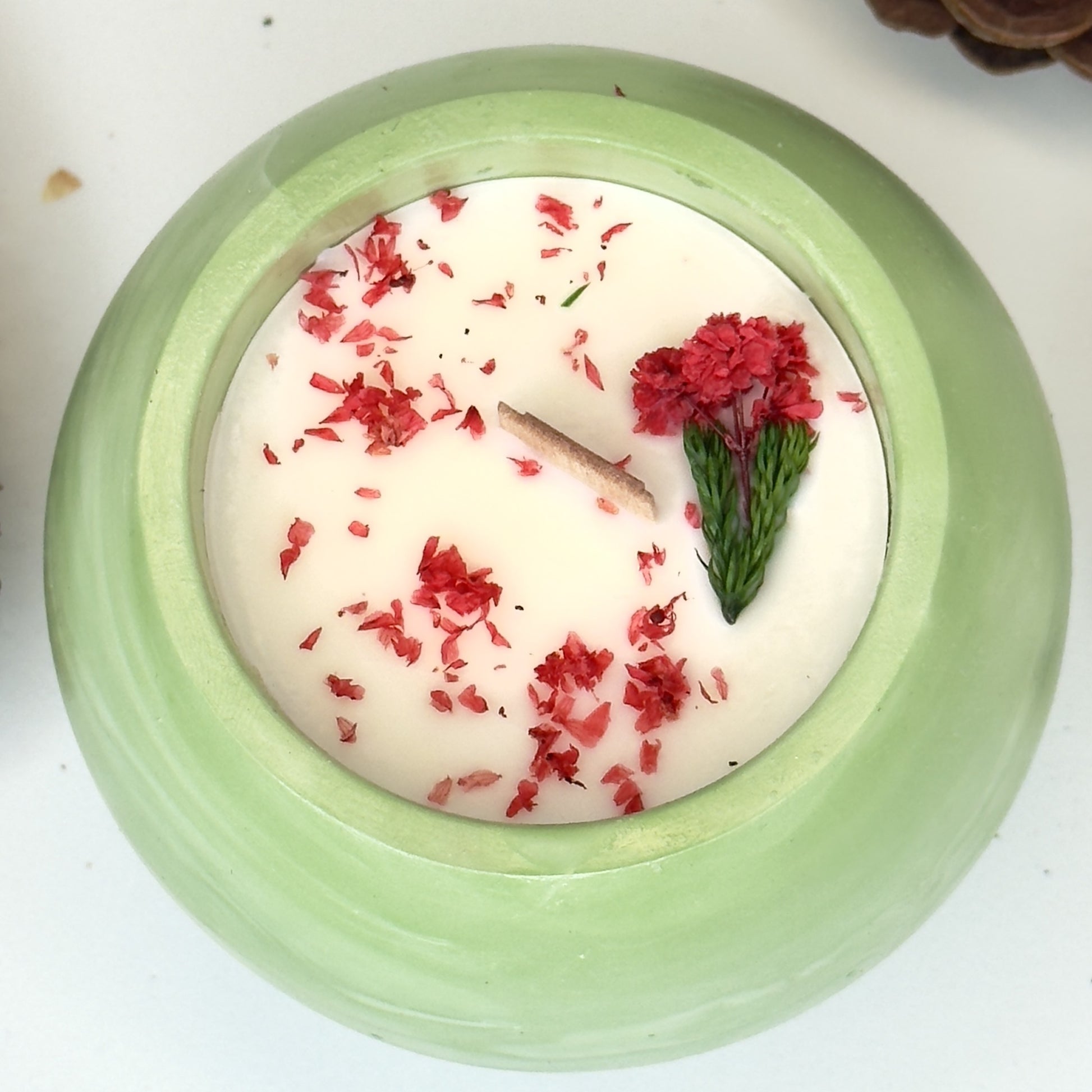 El interior guarda un aroma envolvente navideño, con notas dulces y festivas, perfecto para llenar tus días de calma, luz y recuerdos entrañables. La mecha de madera aporta un toque sensorial extra con su suave crepitar, mientras la decoración floral añade color y encanto.