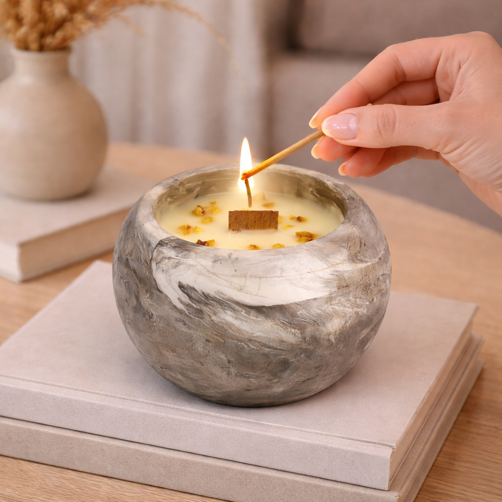 Vela artesanal en formato esférico