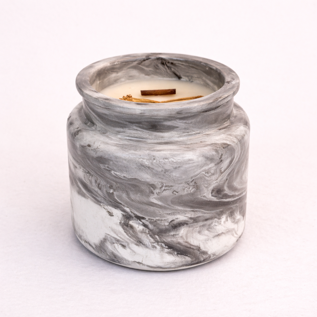 Una pieza artesanal creada para aportar luz cálida, aroma y un detalle decorativo elegante. Elaborado a mano en Jerez de los Caballeros, España con cera de soja 100% vegana, sin parafina. Portavelas/soporte artesanal de yeso hecho a mano (según diseño). Formato: 90 g. Medidas aproximadas: 8 × 8 × 9 cm.